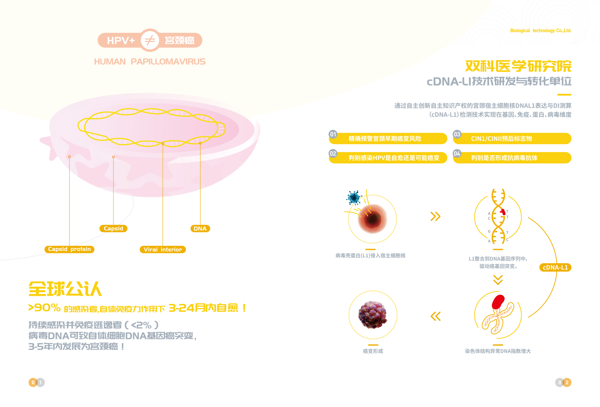 深圳市雙科生物科技有限公司創(chuàng)立于2012年12月12日,是按照國家“十二五”、“十三五”科技創(chuàng)新規(guī)劃、《中國防治慢性病中長期規(guī)劃(2017-2025年)》與《“健康中國2030”規(guī)劃綱要》等政策要求,以“健康中國所系,呵護生命相托”為公司使命,在“十二五”及“十三五”期間公司先后完成技術體系建模與試運行、服務體系構建與運行、腫瘤綜合防控體系建立與實施,在高新生物技術領域,形成了具有完全自主創(chuàng)新與獨立知識產權的常見腫瘤液態(tài)活檢技術、體細胞技術、醫(yī)學AI技術、宮頸癌預警cDNA-L1技術、腦卒中早期預警MTHFR/MTRR技術 、 N-MDT技術、“防-控`-?!奔夹g等和服務體系。